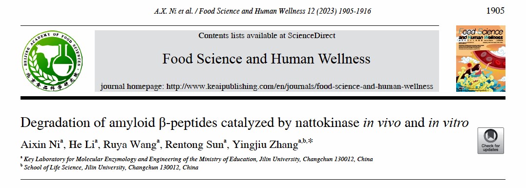 分子酶学工程教育部重点实验室的张应玖教授课题组在获得纳豆激酶(Nattokinase,NK)的基础上,研究发现NK可以有效催化Aβ42聚集体的降解,同时可降低生理条件下血液中Aβs的水平,并间接促进了阿尔茨海默症模型鼠脑内Aβ42水平的下降和淀粉样斑块的减少。该成果以“Degradation of amyloid β-peptides catalyzed by nattokinase in vivo and in vitro”为题,发表在《Food Science and Human Wellness》(影响因子8.022)上。论文第一完成单位为性爱网站