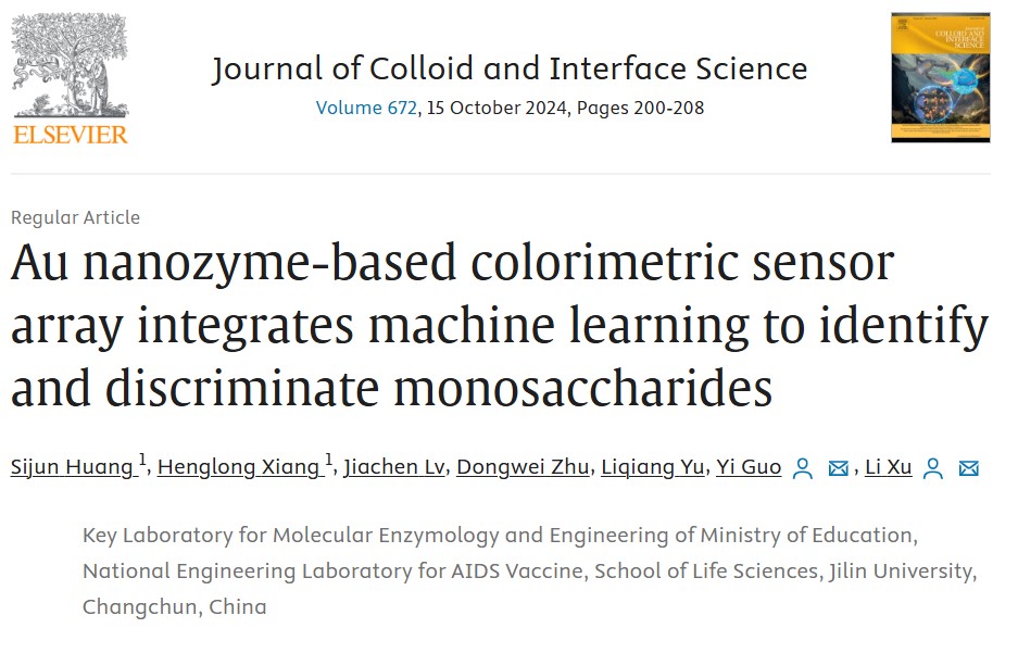 分子酶学工程教育部重点实验室徐力教授、郭轶教授团队报道了基于金纳米酶比色传感器阵列集成机器学习识别和区分单糖的方法。由于不同的单糖表现出不同的氧化还原特性,而金纳米酶可以应用O2、ABTS+•或[Ag(NH3)2]+作为电子受体,以不同的速度催化不同的单糖氧化,并引起不同的显色反应。以此建立的传感器阵列可以产生交叉响应信号,所收集的信号通过线性判别分析(LDA)和层次聚类分析(HCA)来实现不同的单糖或其混合物的区分。此外,可以应用基于传感器阵列的神经网络回归模型同时预测样品中不同单糖浓度。研究论文“Au nanozyme-based colorimetric sensor array integrates machine learning to identify and discriminate monosaccharides”发表在国际学术期刊《Journal of Colloid and Interface Science》上。论文第一完成单位为性爱网站