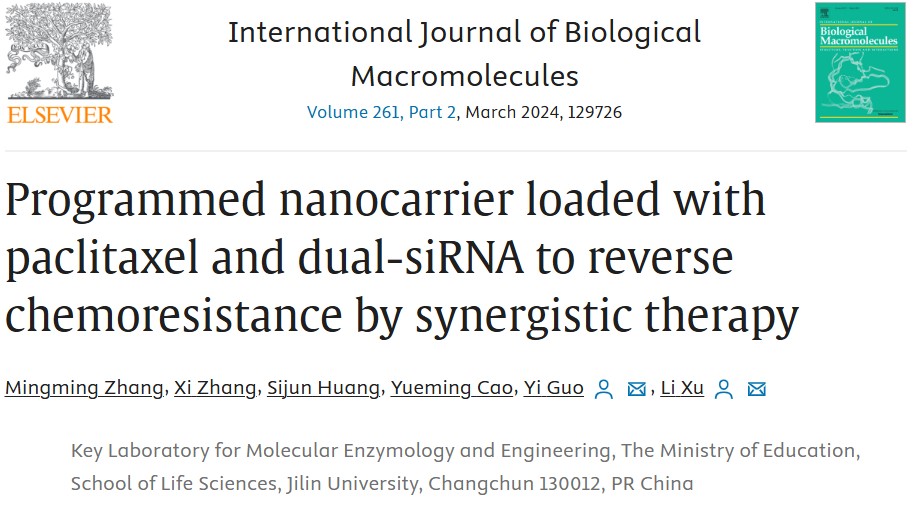 此外,在纳米药物载体方面,为增加PTX的水溶性以及缓解肿瘤耐药性,徐力郭轶教授团队以甲基丙烯酸羟丙酯(HPMA)作为亲水外壳,制备得到一种具有良好安全性和稳定性的阳离子共嵌段聚合物PPEMMRA,实现了多种耐药蛋白siRNA和PTX的共载和分步释放,在体内可以成功地将药物递送到肿瘤组织中。多种siRNA和PTX联用,可以抑制肿瘤细胞迁移,促进活性氧(ROS)释放,诱导肿瘤细胞凋亡,在耐药肿瘤细胞中具有强烈的抗肿瘤效果,进而逆转耐药性发生。研究论文“Programmed nanocarrier loaded with paclitaxel and dual-siRNA to reverse chemoresistance by synergistic therapy”发表在国际学术期刊《International Journal of Biological Macromolecules》上。论文第一完成单位为性爱网站