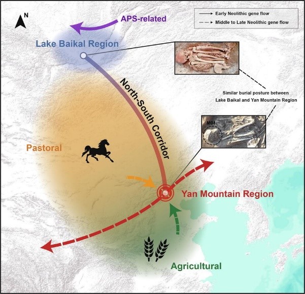 崔银秋教授团队联合河北省文物考古研究院、中山大学,韩国首尔大学以及俄罗斯伊尔库茨克国立大学合作于11月7日在《Science Bulletin》上发表题为 “Ancient DNA reveals long distance interactions in agropastoral border zone of Yan Mountain Region” 的研究论文。该研究最重要的突破在于,通过西伯利亚贝加尔湖地区与中国北方燕山地区新石器时代的42个古人类基因组,揭示了7700年前两个地区间存在的一条史前“南北互动廊道”,并填补了红山文化和夏家店下层文化之间的古老基因组分析空白;强调了燕山地区是黄河与西辽河地区间史前人群互动的关键区域。