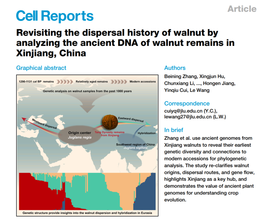 崔银秋教授与植物科学学院王乐副教授团队利用古DNA技术成功获取了世界首例古代核桃全基因组数据,并综合运用古基因组学与群体遗传学分析手段系统揭示了核桃(Juglans regia)在丝绸之路上的传播路径及遗传演化特征。该研究不仅填补了核桃古基因组数据的空白,更为揭示丝绸之路上关键经济作物的传播历史与驯化轨迹提供了直接的分子证据。该研究成果以“Revisiting the dispersal history of walnut by analyzing the ancient DNA of walnut remains in Xinjiang,China”为题,在国际权威学术期刊《Cell Reports》上发表。性爱网站