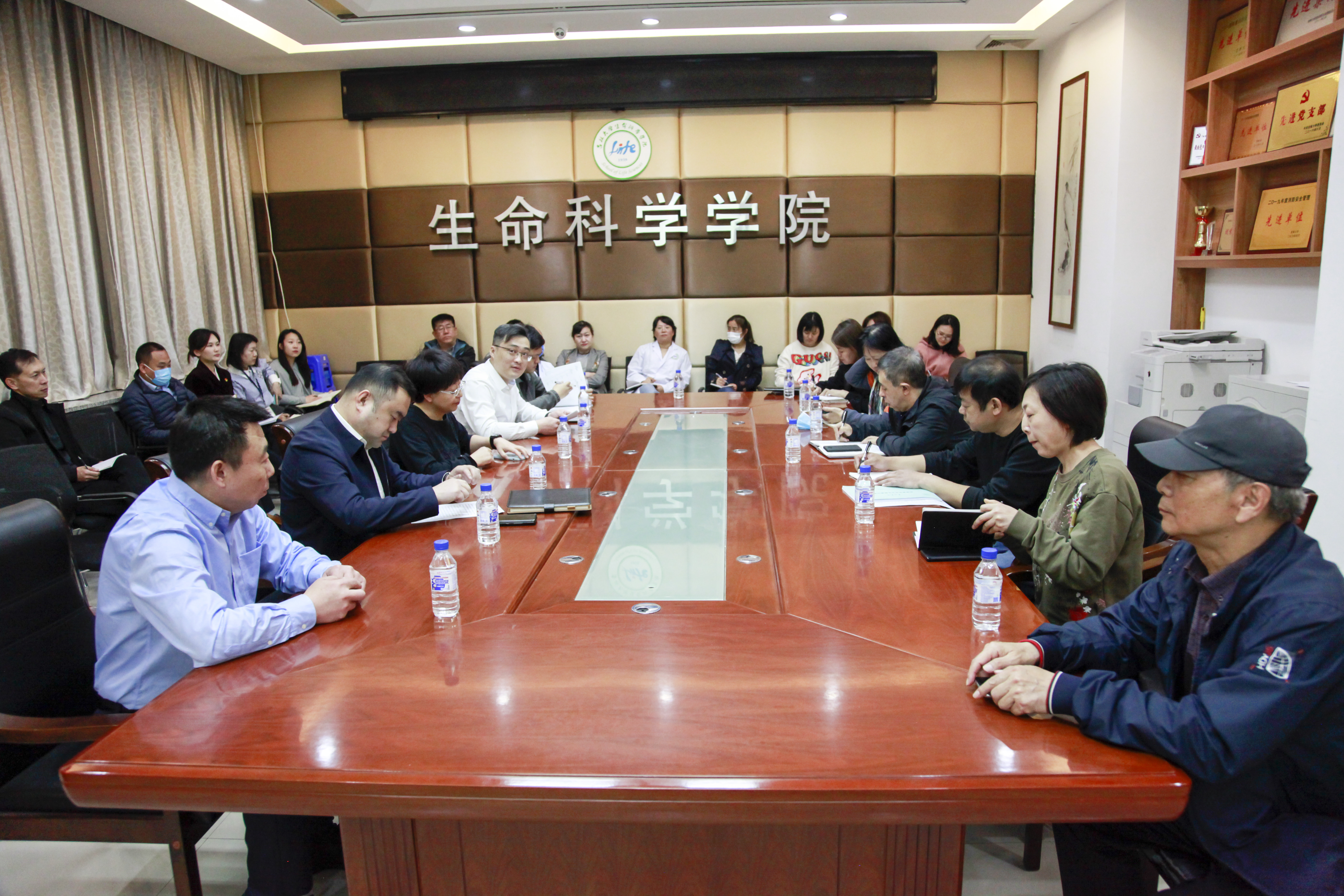 于生命科学楼335会议室召开“学党史、践承诺、见行动”实验室安全专项治理工作会,院长于湘晖、党委书记白宇、各实验室安全负责同志、全体行政人员参加会议,会议由行政副院长崔帅主持。