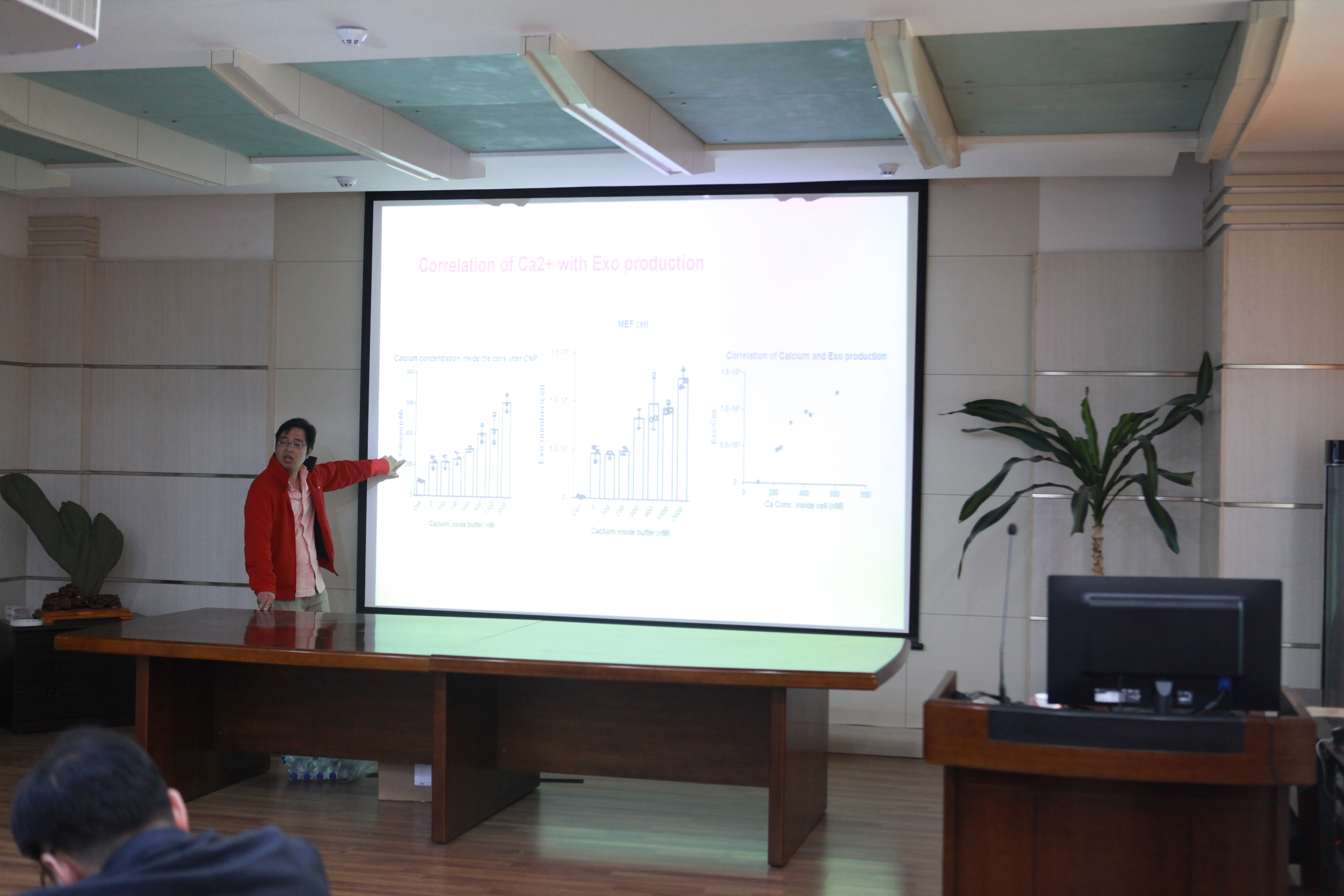报告名称为:Cellular nanoporation-produced exosome for cancer therapy,报告内容主要涉及了细胞纳米孔产生的外泌体用于癌症治疗、外泌体新型给药系统的研究以及基于外泌体的癌症早期临床检测及治疗。杨博士用简洁易懂的语言向听众展示了通过细胞纳米孔产生外泌体的过程以及外泌体治疗癌症的效果。同时,杨博士也展示了新型的纳米通道电穿孔(NEP)芯片,此芯片可以将目标质粒通过NEP技术运送至正常细胞内,正常细胞的外泌小体产量是原来的将近100倍。除此之外,杨博士也展示了外泌体的纳米检测芯片以及定量检测外泌小体内微量的RNA的过程;也对他们的工作进行了展望,吸引了广大师生的兴趣。讲座过后,不少师生就报告内容向杨博士提出问题,杨博士一一做出了解答。