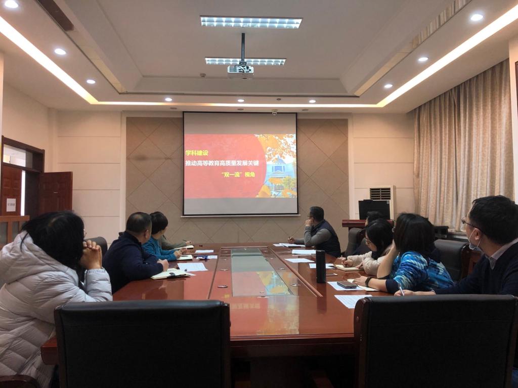学科建设的问题与思考》的专题报告,学院党政领导班子成员参加会议,会议由院长于湘晖主持。
