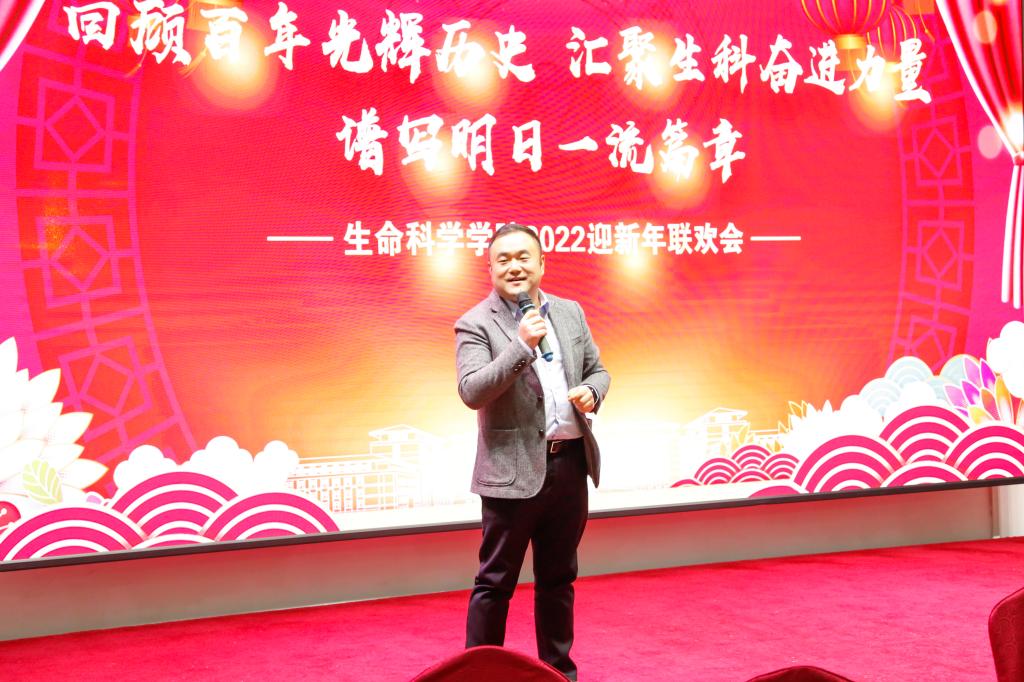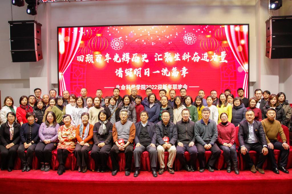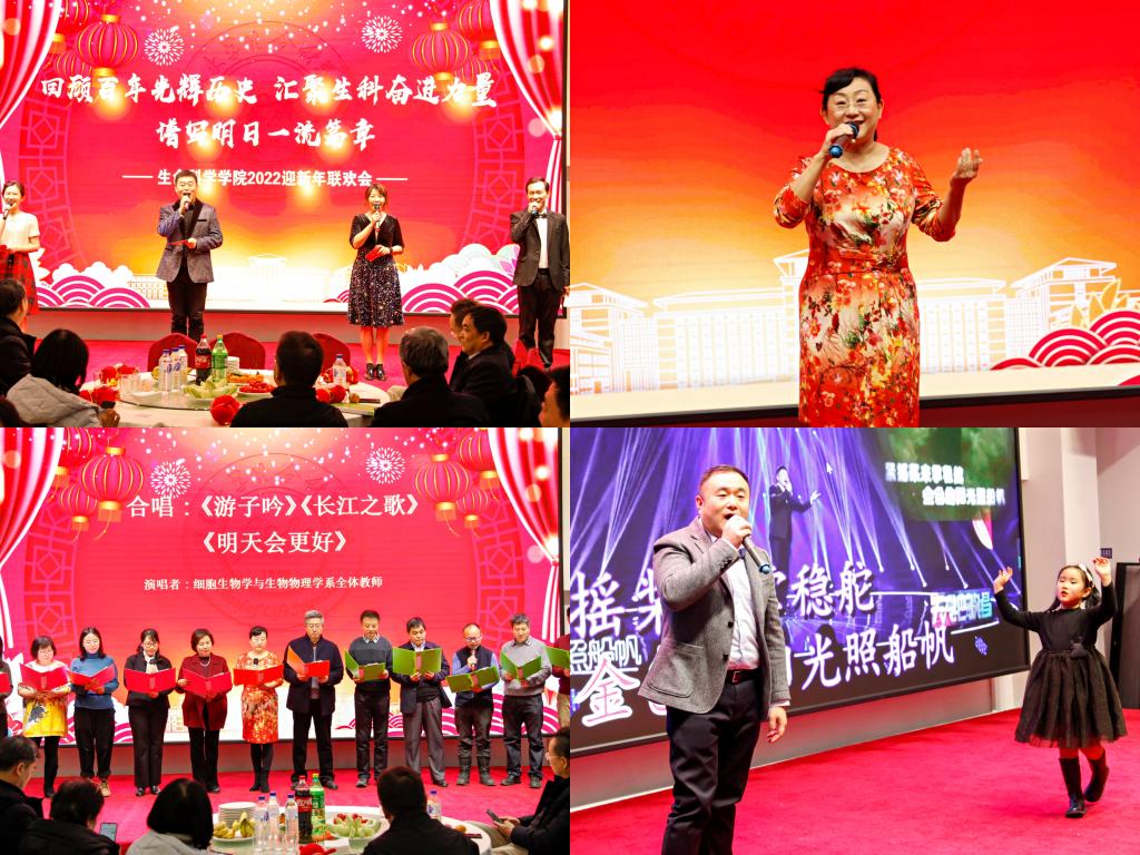 于友谊会馆举办“回顾百年光辉历史 汇聚生科奋进力量 谱写明日一流篇章”2022迎新年联欢会。全体教职工欢聚一堂,共迎新年。联欢会由刘成柏、侯阿澧、周艳、丁子芮主持。