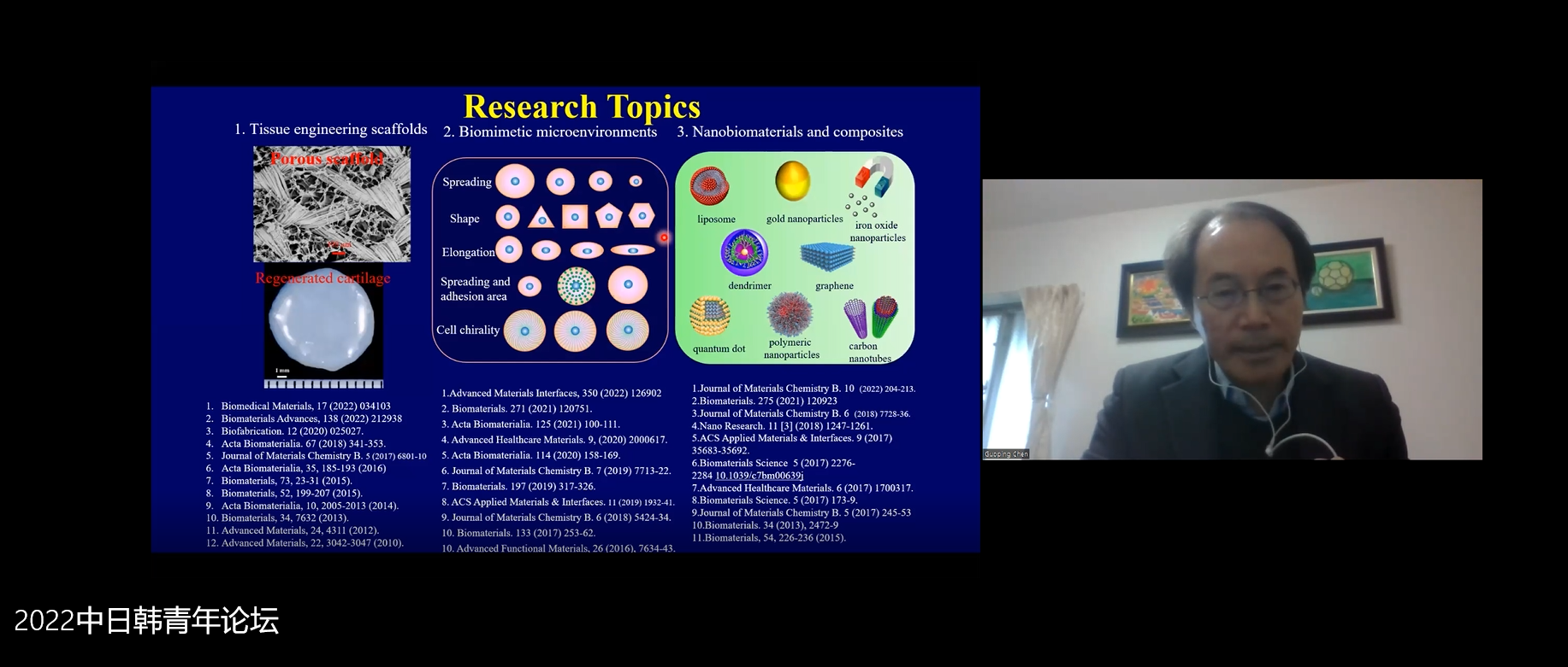论坛围绕“生物医药与健康”和“生物医学工程和生物技术”议题,由来自韩国汉阳大学的Hyungshin Yim教授、Jae-Yeol Joo副教授、延世大学Na-Young Song 助理教授、韩国建国大学Jinhong Wie 助理教授、日本筑波大学陈国平教授、大阪大学吕玉泉副教授、日本横滨市立大学Yongchan Lee助理教授、日本兵库医科大学Hirosato Kanda助理教授、段韶琪博士后、德国马克斯普朗克生物物理研究所吴迪博士后、性爱网站