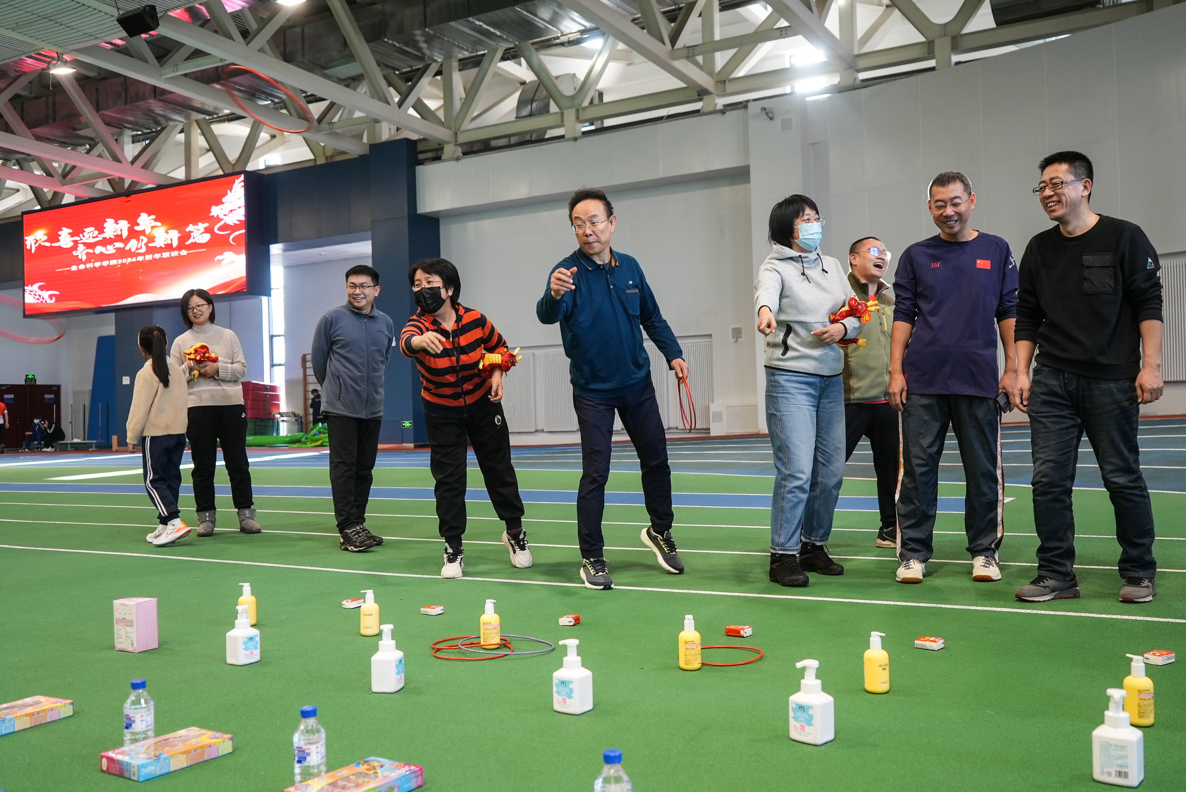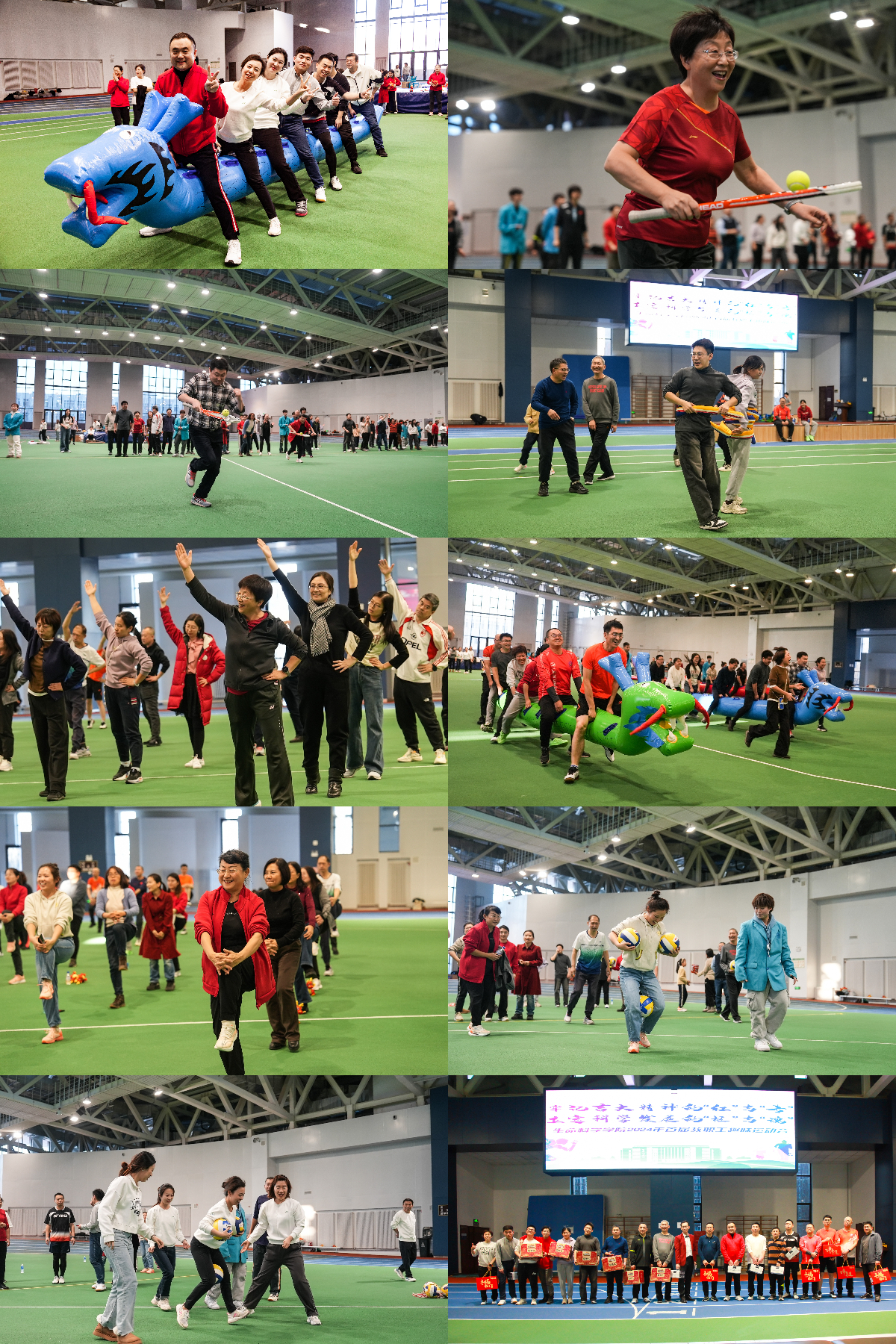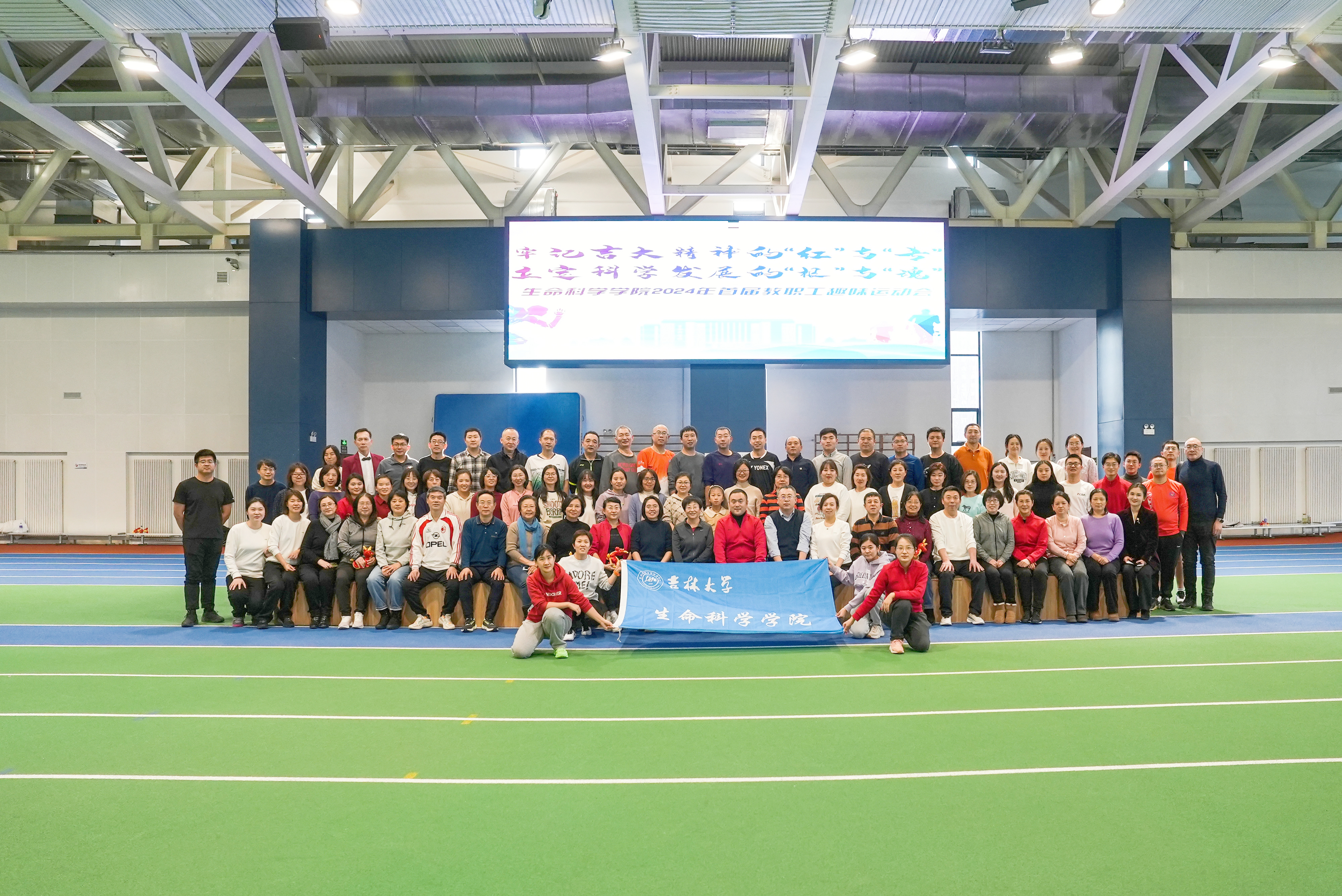 于宋治平体育馆举办“牢记吉大精神的‘红’与‘专’ 立定科学发展的‘根’和‘魂’”——2024年新年联欢会暨首届教职工趣味运动会。全体教职工欢聚一堂,共迎新年。联欢会由刘成柏、丁子芮主持。