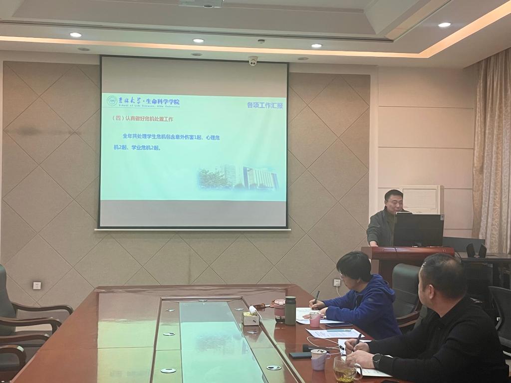 行政副院长崔帅围绕行政管理工作,提出要厚基础补短板,提升服务能力,持续推进行政管理工作的标准化流程化,做到日常管理服务不缺位,应急响应能到位,关键时刻能补位;要重民生重实效,加强基础保障,做到始终围绕学院中心工作,时刻回应师生急难愁盼的关切;要注动力添活力,丰富支撑载体,加强校友联系,政企对接,在深化社会服务、助力吉林振兴的过程中提升学院和生物学学科影响力。
