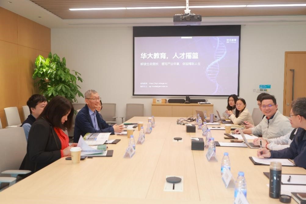 韩葳葳教授赴深圳华大基因股份有限公司就人才培养、科研协作和课程建设等方面的进行了座谈和交流。华大研究院粤港澳分院院长刘传宇、华大教育中心副院长王林鹏、华大鉴正研发总监郭小森、华大研究院生物智能研究所所长沈梦哲、华大智造宋李烟、谢寅龙和程瑶、华大教育中心研究生部副部长赵福利和张梦佳参与了座谈。