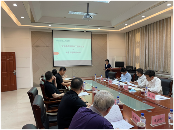 首先,于湘晖院长汇报了艾滋病疫苗国家工程实验室的基本情况,“艾滋病疫苗国家工程实验室”建设至今,承担各类科研课题100余项,实验室主持研制的复合型艾滋病相关研究为我国艾滋病疫苗及其他疫苗的研究积攒了宝贵经验,具有重要指导意义。于湘晖讲道,目前艾滋病疫苗国家工程实验室正在向国家工程研究中心重组及优化,实验室将强化顶层设计,坚持三个核心要点,一是要服务国家重大战略任务和重点工程,二是要攻克产业关键核心技术、解决卡脖子问题,三是要推动成果产业化应用、带动产业发展。于湘晖根据发改委对于国家工程研究中心的评价数据指标进行了详细分析,表明实验室重组和优化的整体布局为坚持恪守定位,加强培育、分批推进,为实现核心技术自主可控、提升产业链供应链现代化水平、推动高质量发展提供技术保障。为使优化后的工程中心实力增强、定位更具特色,于湘晖提出了实验室整合优化方案和计划时间表,希望学校能够支持此次工程中心重组优化,整合学校其他学院的优秀实验室资源,通过调整、充实和整合等方式,推动工程中心持续强化创新发展。