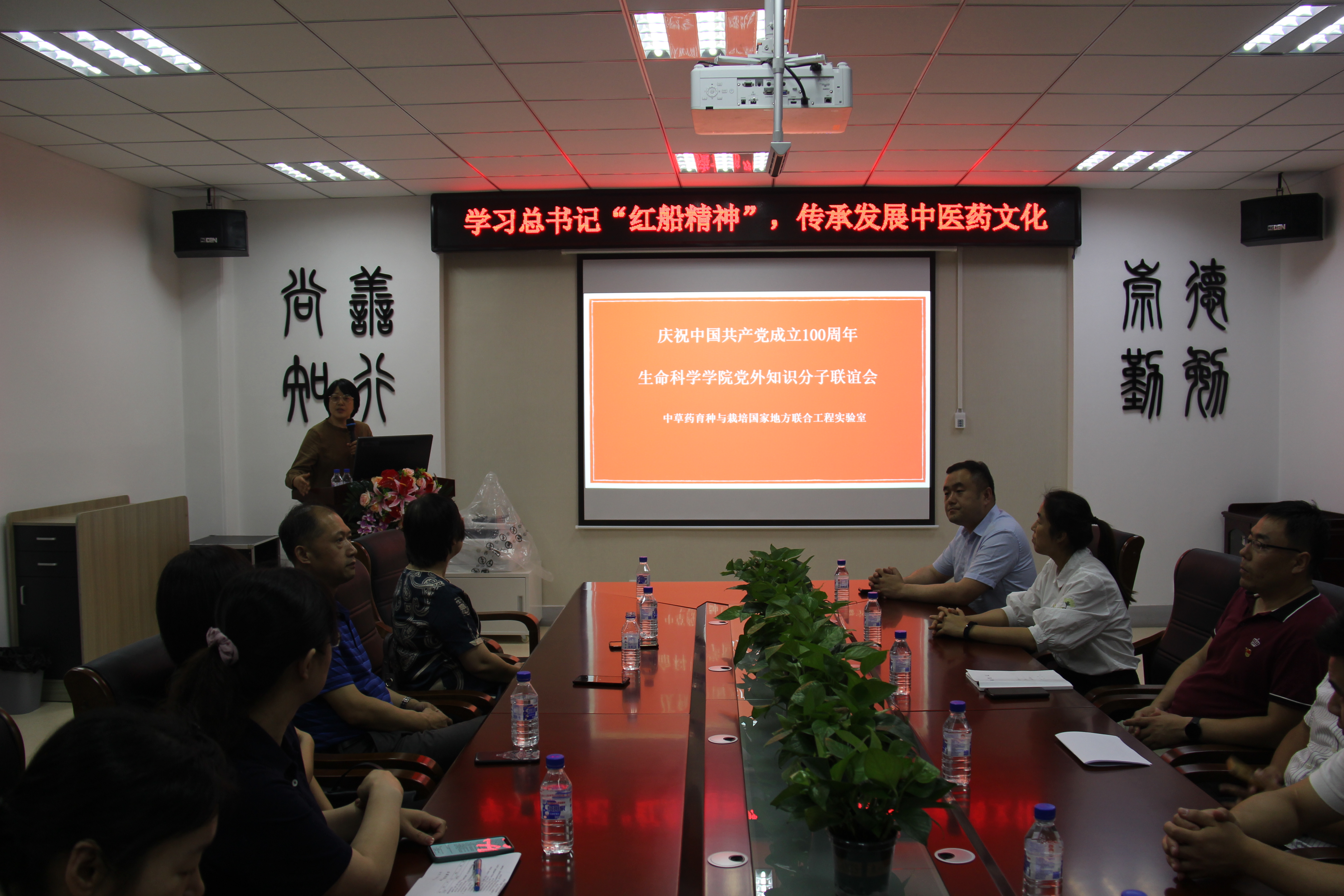 活动伊始,中草药实验室老师李江楠做了《中国共产党发展历程》的主题报告,与参会师生共同学习以及回归了中国共产党100年的发展历程;邢茗在报告中对中草药育种与栽培国家地方联合工程实验室的建设与发展的历程进行了介绍;学院党外知识分子联谊会秘书长孙凤英以《统战史话》为题,着重讲解了党外人士以及统一战线在共和国建设中发挥的重要作用;接下来,中草药实验室主任陈霞的报告《关于中医药文化的思考》将本次活动推向高潮。她从“中医药历史”“中医药国内外现状”“中医药的核心理论与思想”以及“中医药的启迪”等方面充分详实地与参会师生分享了多年来对我国中医药文化的思考及心得,并提倡对我国的传统瑰宝——中医药要常怀敬畏与感恩,并充分传承以及发扬光大!党委书记白宇在总结中,首先对在建党百年的伟大历史时刻,我院党外知识分子能够召开这样一次会议给予了充分的肯定,同时也提出广大党外知识分子要更加紧密地团结在以习近平同志为核心的党中央周围,实现思想和行动统一,凝聚力量投入到学校以及学院的发展和建设之中。最后,他对党外知识分子提出了几点希望:一是提高政治站位,深刻认识党的领导是最大的优势;二是牢记责任使命,大力弘扬爱国奋斗精神和科技报国精神;三是发挥好“智囊团”作用,积极推动学院“双一流”建设;四是发挥示范带动作用,引导职工群众聚焦聚力高质量发展。
