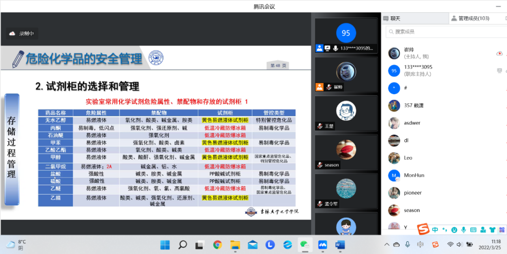 化学国家级实验教学示范中心副主任魏士刚研究员做《实验室内危险化学品的安全管理》主题讲座,为下一步学院进行的危化品集中整治工作打下坚实基础。会后,及时向学院师生传达安全管理工作精神。