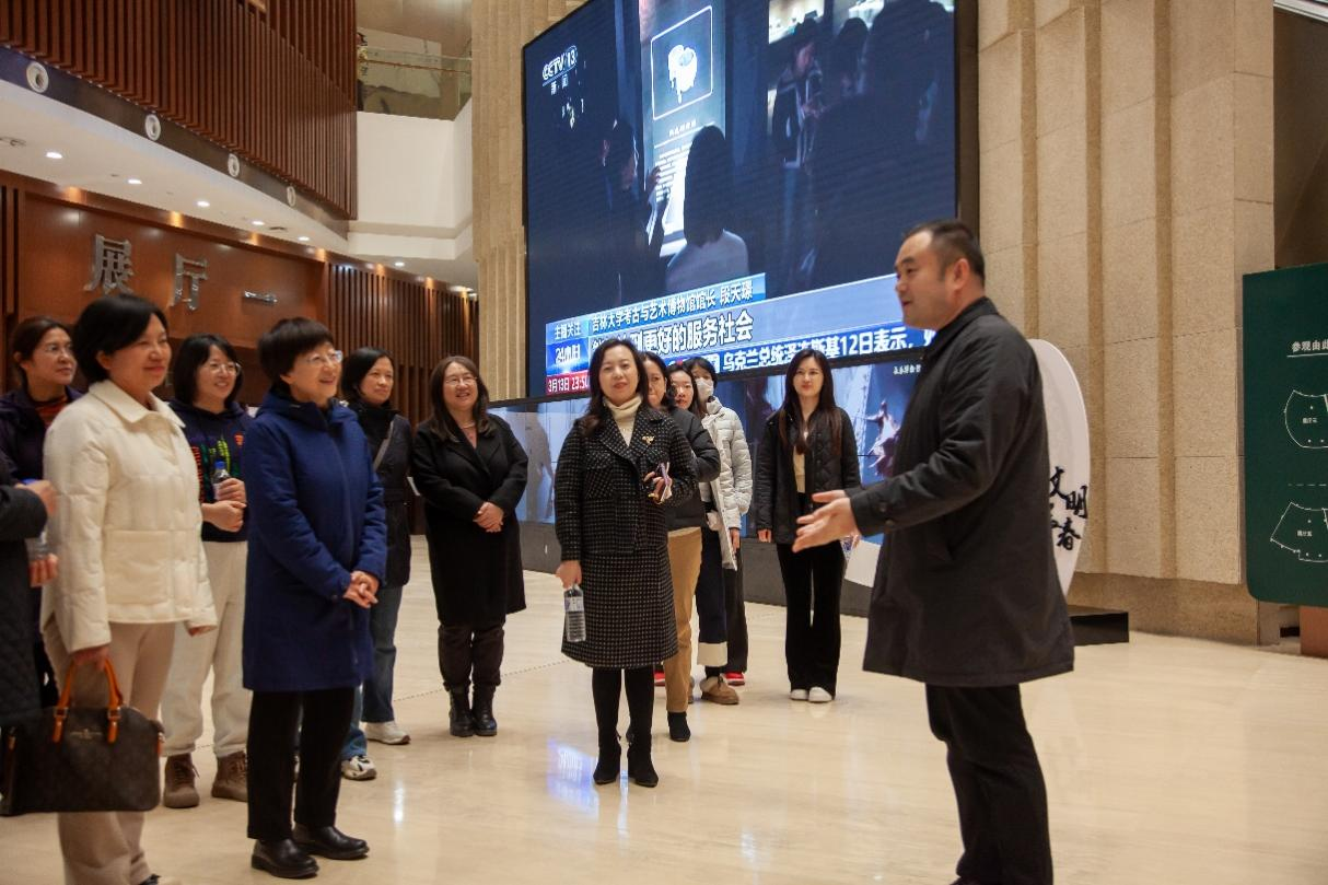 在博物馆讲解员的引导下,女教师们步入“吾道何之——精品书画展”,欣赏了从元代到近代的精品书画,观赏了齐白石等名师大家的作品,近距离、沉浸式欣赏到中国传统书画的独特魅力。行至“山海爵——青铜器展”,以《山海经》为引,聆听青铜器从商周至秦汉、从祭祀礼器到日常用器的转变。在“国色天工——中国传统技术与艺术展”内,以中国传统五色、传统制作技术与装饰艺术为主题,选取陶瓷器、玉器、青铜器、漆器等不同质地的140余件文物,从电影台词、武侠画面与文物故事融合中感受“色、相、技、艺”四个单元。在“春和景明——明清精品瓷器展”内,从唐代邢窑白瓷的素雅到明代青花缠枝莲纹梅瓶的繁丽,女教师们跟随讲解员提示,专注比对釉色窑变与纹饰布局的时代特征,感受中华文明的古老故事。