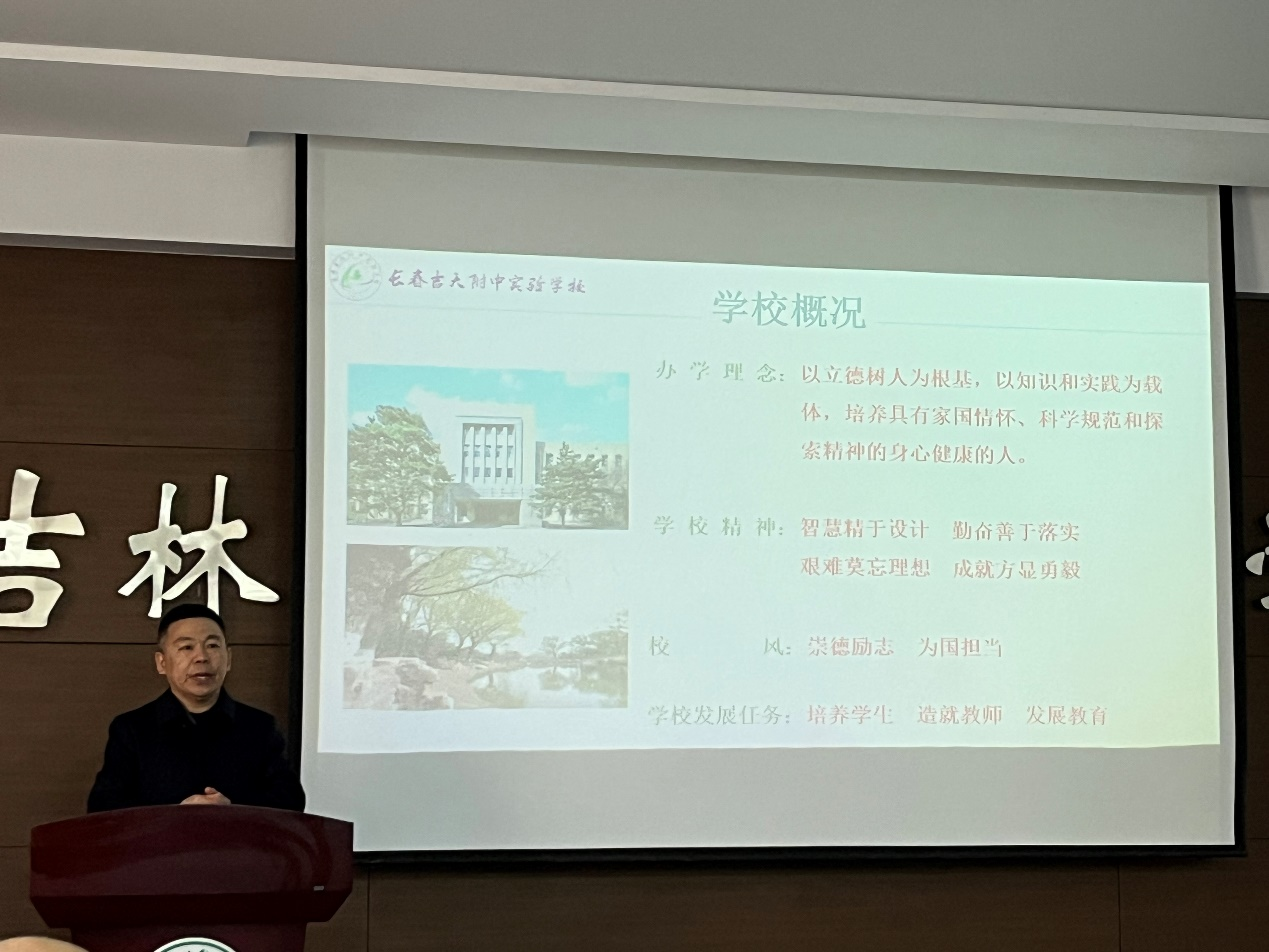 陈铁松对长春吉大附中实验学校基本情况进行介绍。吉大高中坚持创新人才培养机制,改革办学质量评价,遵循教育规律和人才成长规律,构建以办学方向、课程教学、教师发展、学校管理、学生发展等素质教育为导向的办学体系,努力推动吉大高中教育高质量发展。拥有一支高素质的师资队伍、注重学生全面发展的教学理念、完备的教育设施和良好的校园环境,能够为教师提供广阔的发展空间和良好的职业发展前景。