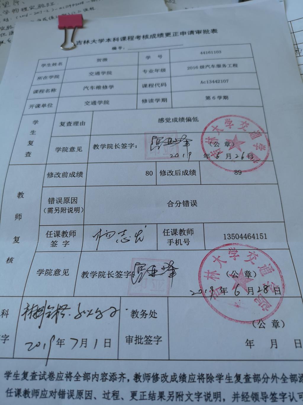 根据《关于进一步明确本科生课程考核等有关问题的通知》(校教字〔2018〕47号)文件有关精神,现对生命学院2018级张馨月同学(学号:13180607)2018-2019-2学期课程成绩更正如下:
