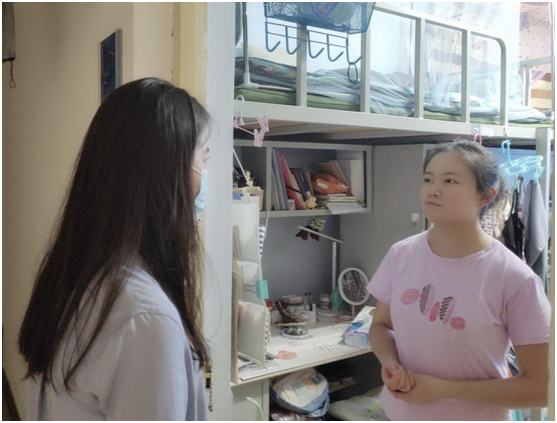 辅导员杨意赴2018级暑期留校学生寝室和第一批返校本科生寝室开展了寝室卫生安全检查工作,并与第一批返校学生逐一谈话了解情况。
