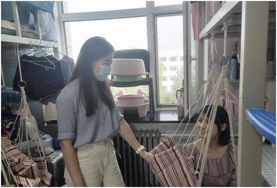 学生返校”二维码,前往校区核酸检测点完成核酸检测,并对返校学生的吉祥码、通信行程卡和核酸检测结果进行核验和复查。在此次的寝室卫生安全检查工作中,在对如违规、违章电器,易燃易爆危险品等物品进行安全检查、落实日常学生公寓管理工作的同时,杨意老师强调到校学生要严格做好日常健康监测,完成每日健康打卡和晚签到,返校同学严格执行暂时封闭管理,在校园内活动时应及时扫描“吉大码”做好轨迹记录。如果出现发热等特殊情况,一定要立即上报,全面落实各项疫情防控要求。同时,杨意老师密切关注学生的毕业去向,做到动态精准地掌握学生情况,与到校学生进行一对一交流,了解学生的目标进展和学习情况,从而更好地给予学生建议和帮助。最后,由于校园内仍有多处区域正在施工,杨意老师提醒到校学生要注意人身及财产安全,远离危险区域,避免在夜晚前往校园内偏僻的地方,遵守校内各项安全规定和要求。