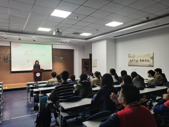 活动开始,主持人郭洧灼同学讲解了五四运动的事件起因、主要经过以及历史意义。她表示,作为中国近代史上的重大事件,五四运动具有“里程碑”意义。五四精神给落后的中国带来了文化思想的解放,也释放了人们埋藏已久的爱国热情。新时代的青年要继续发扬五四精神,以实现中华民族伟大复兴为己任,不辜负我们这个伟大的时代。