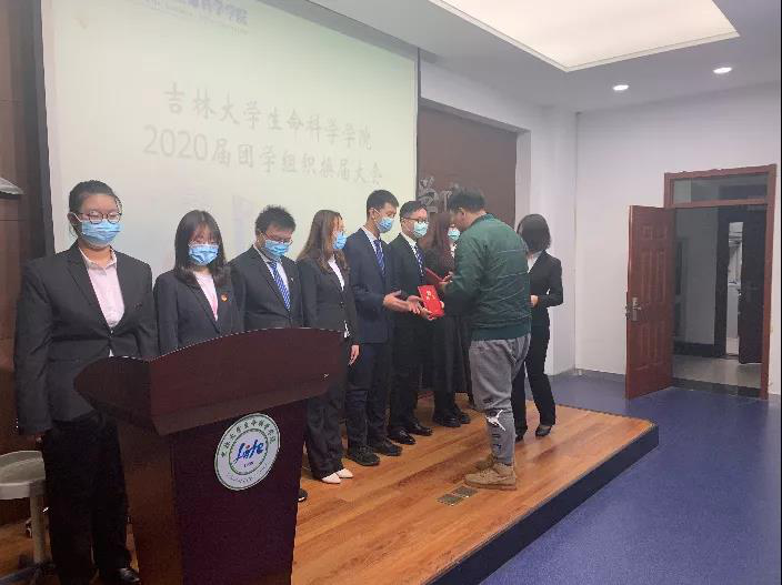 2020届学生组织换届大会于2020年10月24日18时在生命科学楼107室召开。生命科学学院党委副书记崔帅老师,学院团委书记、2018级辅导员丁子芮老师,2019、2020级辅导员齐鹏老师,研究生兼职辅导员于佳宁老师,2020届团学联组织学生干部及部分学生代表参加此次大会。