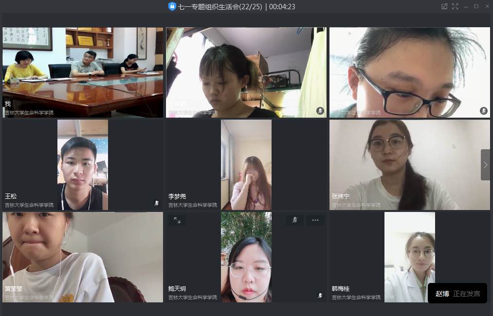 由于疫情原因,本次组织生活会采用线上方式,参加人员为本科学生第一、第二党支部全体党员,及学院党委副书记崔帅、学工办辅导员张春阳、马莹、齐鹏。会上,各位党员紧紧围绕,迎党的生日、讲战疫故事、悟初心使命这一主题,分享身边的抗疫故事,讲述抗疫体会。卿莉同学首先讲到,疫情严重期间,在她居住的村子里,从村支部书记到村里的每一位党员,都始终坚守在自己的工作岗位上,环境消杀、核查外来人员信息、向村民宣传抗疫知识及信息,及时的把党中央的政策落实给每一位村民。赵博同学谈到,给她印象最深的是那个因为下错火车误入武汉的大连小伙,虽然是误打误撞,但是在医院的志愿工作,让他从最初的只想“包吃包住”混口饭吃,到最后的全身心投入,从业余到专业,这段难忘的经历不仅仅改变着他对医生对共产党员的认知,同时也感动着数万网友。随后,其他党员也纷纷表达了自己对于本次疫情的感悟。