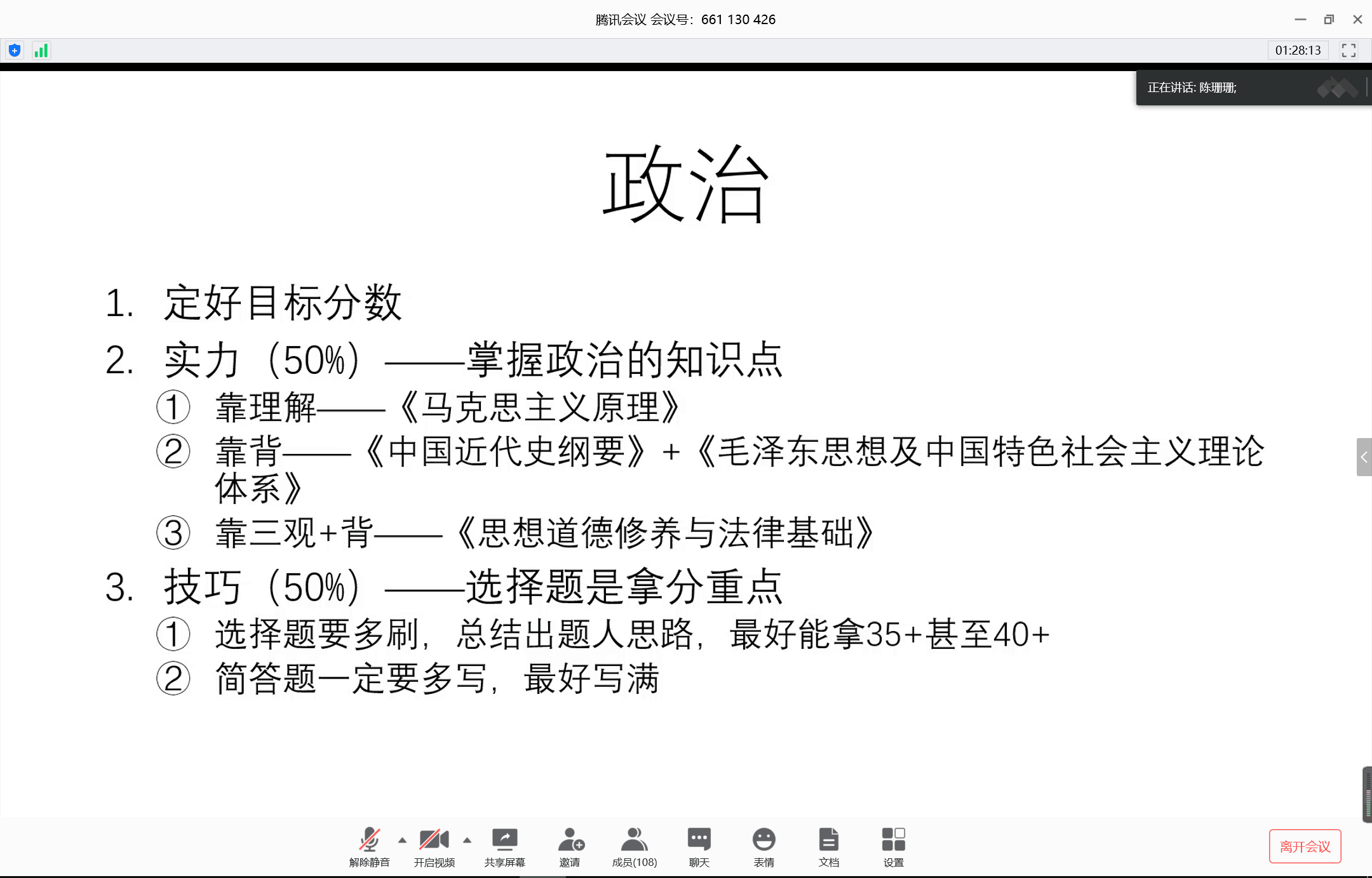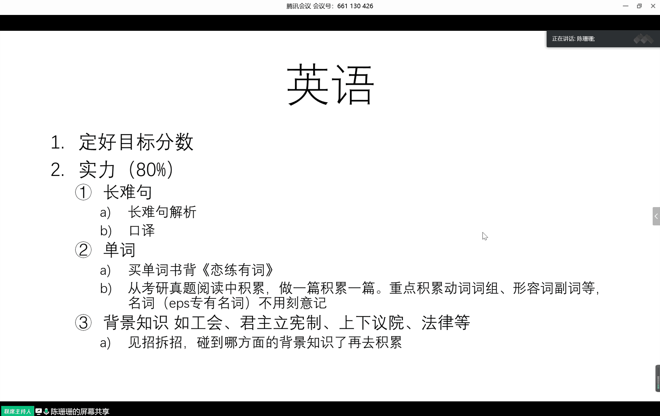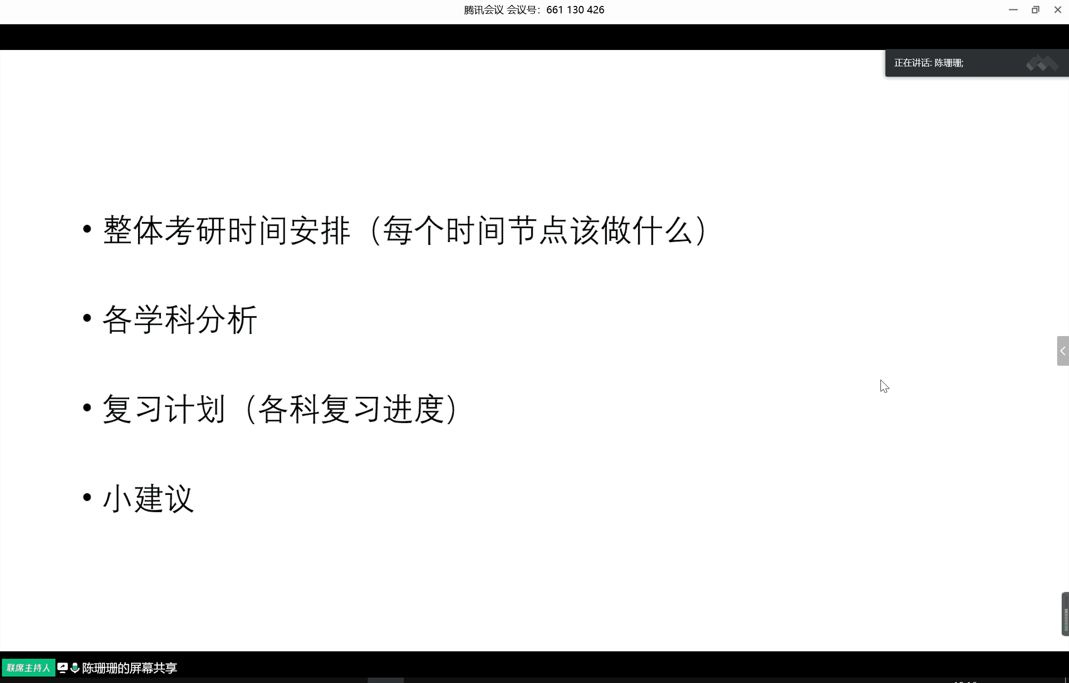 为了进一步提高我院学生的考研热情,明确考研目标,为同学们答疑解惑,了解掌握相关考研信息,我院学业发展部于4月30日下18:30举办了一场线上考研经验交流会,邀请到了2016级的申浩阳学长和2016级的陈珊珊学姐为我院同学传授考研备考技巧和心得。