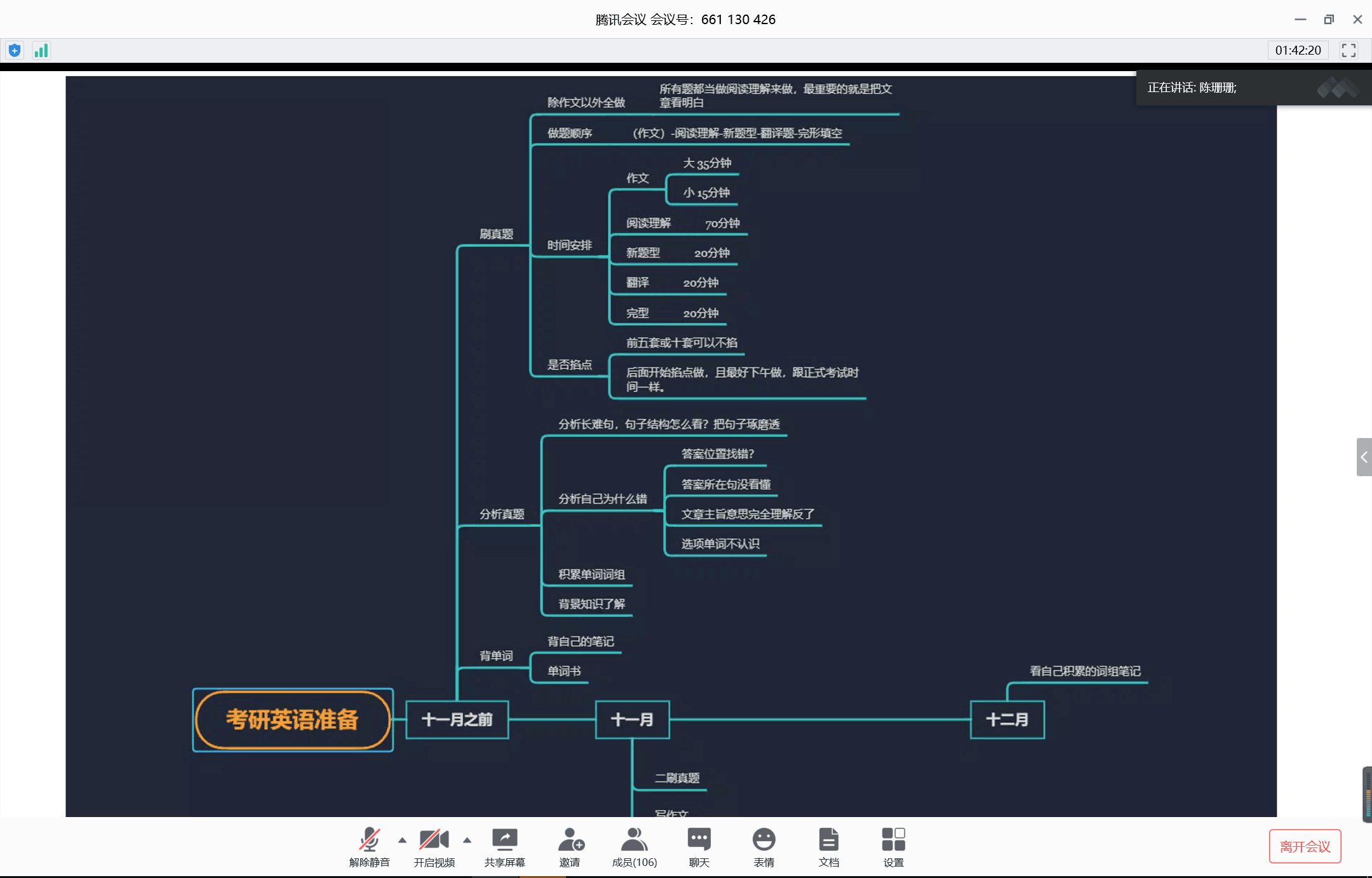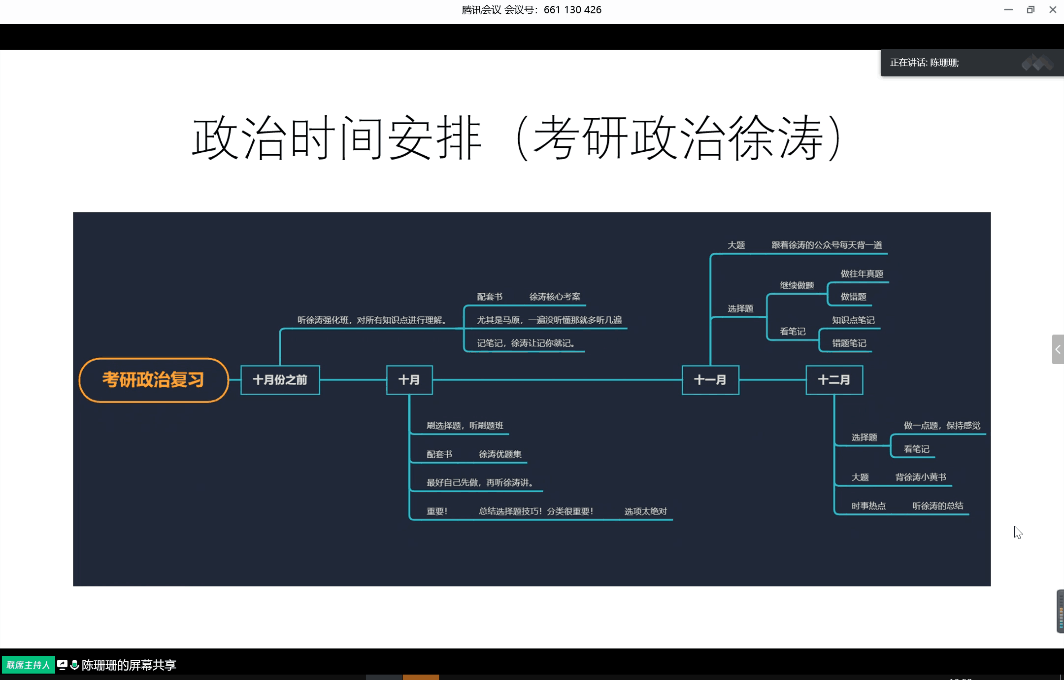 要想充分利用好时间,提高复习效率,一个作息时间表是少不了的,学长就给我们做了一个很好的示范,学长说不同的复习阶段要制定不同的时间表 同时也要时刻关注自己的身体状况。同时学长也给出了一些科目的学习资料。