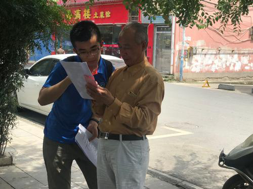 队员们在进行问卷调查