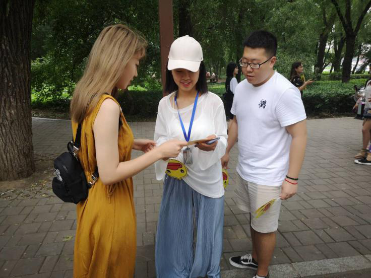 在人民公园进行采访