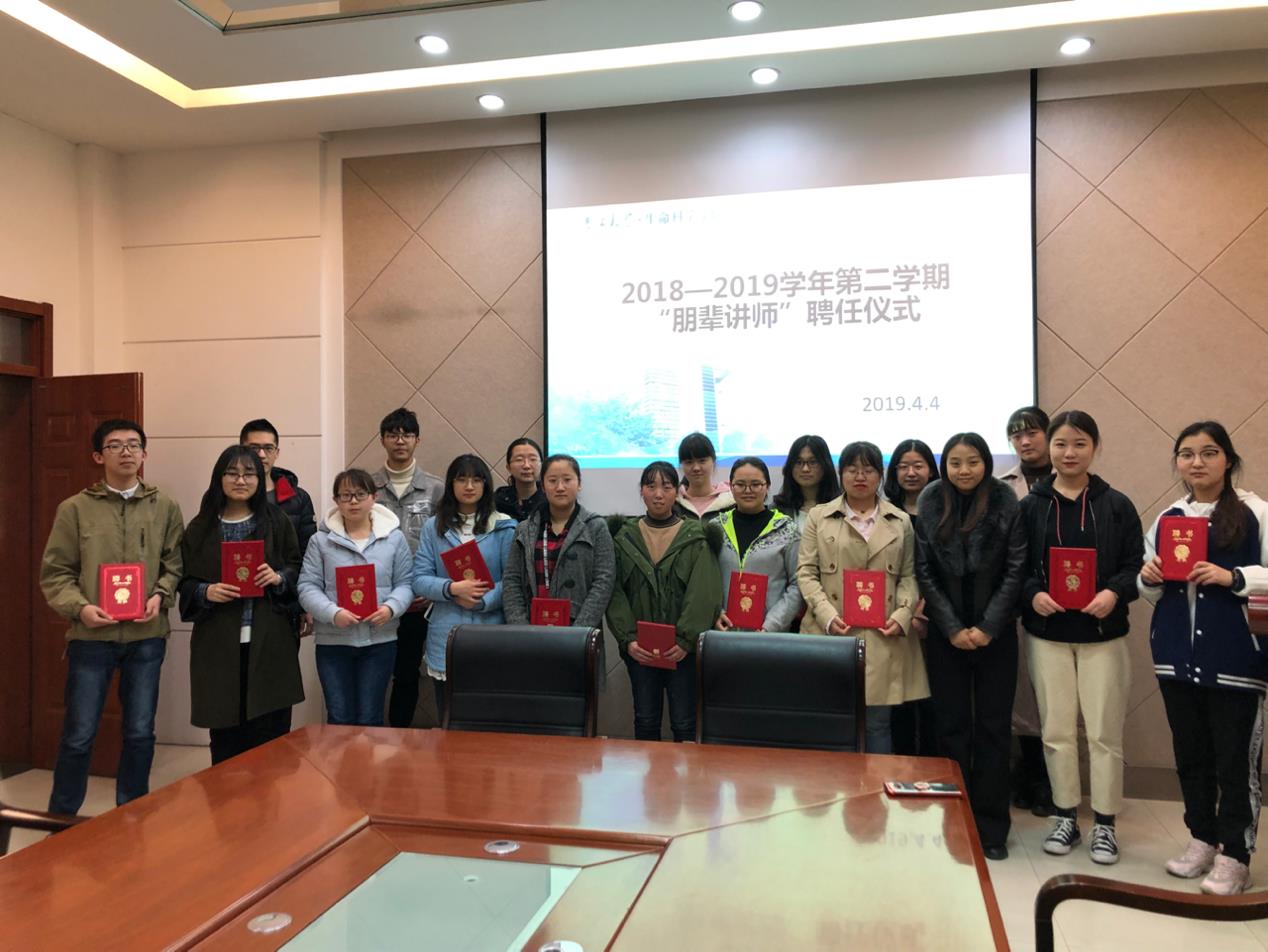 2018-2019学年第二学期朋辈讲师聘任仪式。学院党委副书记崔帅、学工办主任张春阳、辅导员马莹以及2019年性爱网站