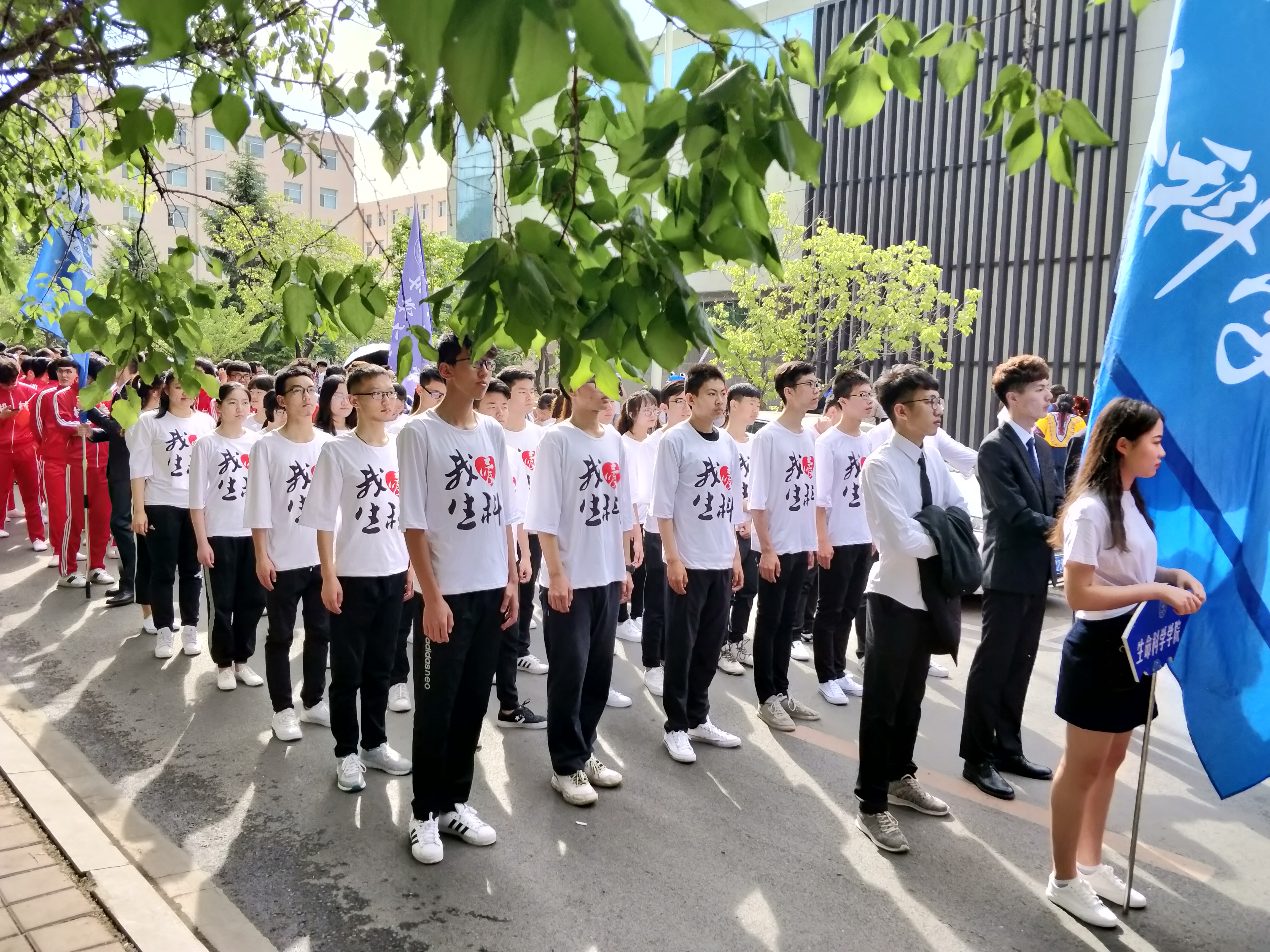 在运动会筹备期间,来自学院的几十名本科学生自愿报名参加了运动会方队,一番严格挑选后,留下了36名方队人员。经过了多个夜晚的训练与磨合,他们顶住了深夜的凉风和疲惫,重复了几十次几百次的动作;他们同心协力,共同进步,争取每一个步伐到做到完美,每一个动作都做到极致。终于,他们整齐划一的挥臂映入眼中,标准统一的正步令人羡慕。在运动会当天,方队同学们用他们神采奕奕的身姿体现了生科院的风貌,用他们英姿飒爽的步伐显示了属于他们的青年精神。