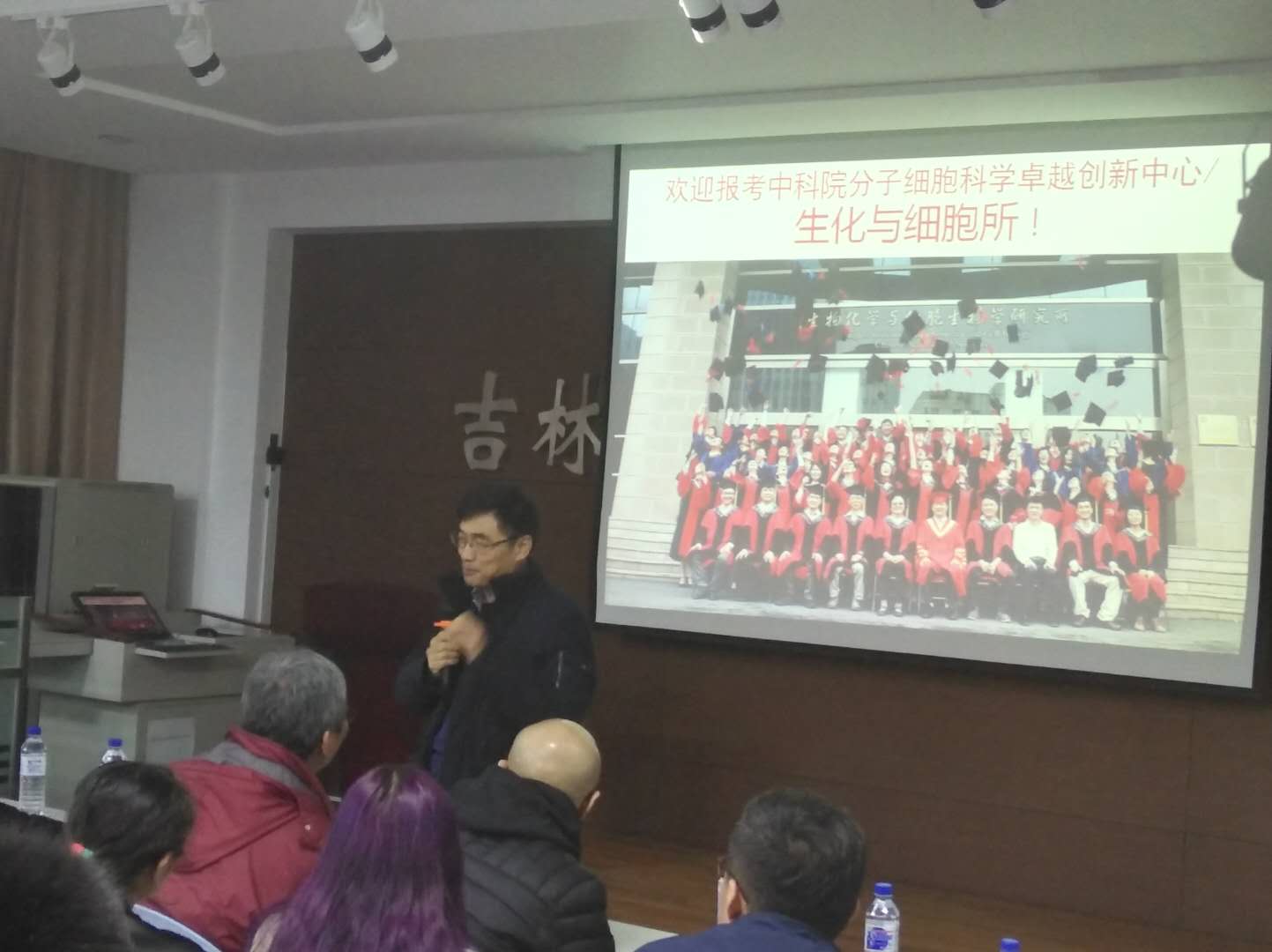 首先,侯法建研究员就RIG-I-MAVS介导的抗病毒天然免疫进行了学术报告,并耐心回答了学生对于相关领域的一些问题与疑惑。接着,张雷研究员以诙谐的语言生动讲述了关于器官大小控制与肿瘤发生的专题报告,之后,对中国科学院上海生命科学生物化学与细胞生物学研究所进行了详细的介绍。最后,和蔼可亲的徐国良院士耐心细致的回答了同学们提出的疑问。