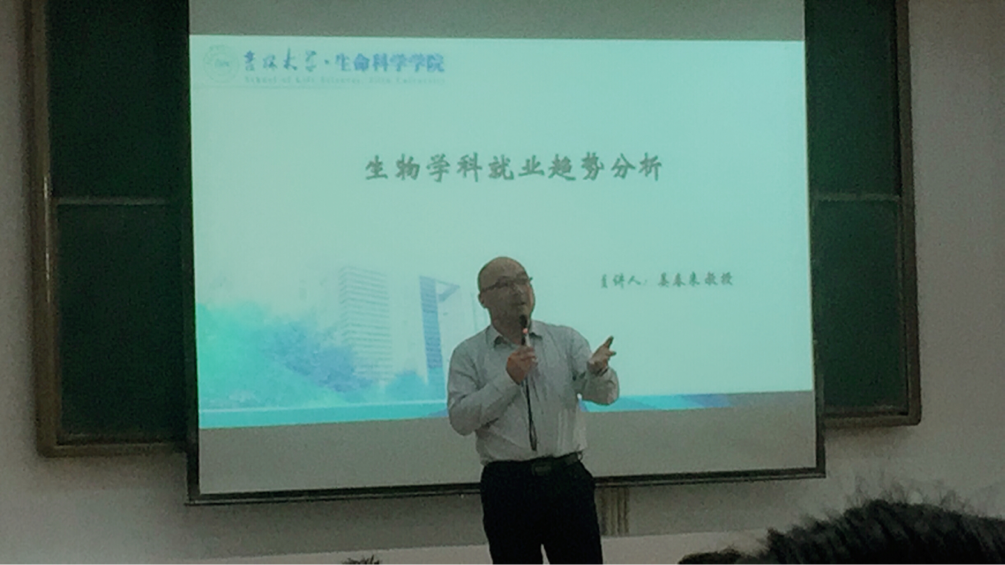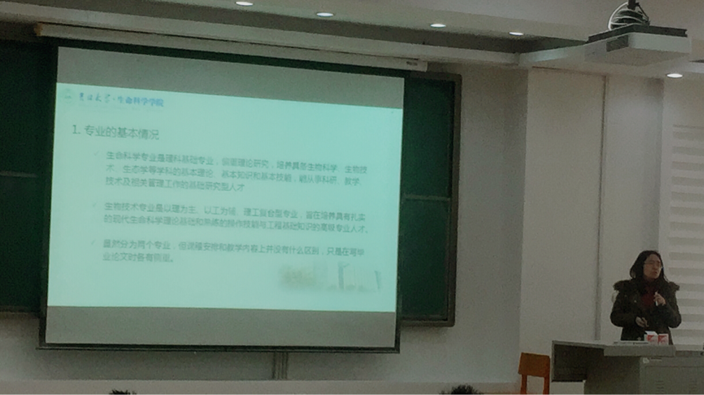 崔银秋教授做了题为《生命科学与生物技术发展现状与前景分析》的报告,从生命科学与生物技术两个专业的基本情况和发展前景,以及我国生命科学与生物技术的发展态势,介绍了我院目前的主要科研方向和科研成果,同时结合两个专业学生学习和发展方向提出了若干建议;姜春来教授做了题为《生物学科就业趋势分析》的报告,幽默风趣的向同学们讲解了生物学科就业去向和本科阶段学习的注意事项。最后,各位老师针对学生的现场提问进行了详细的解答。