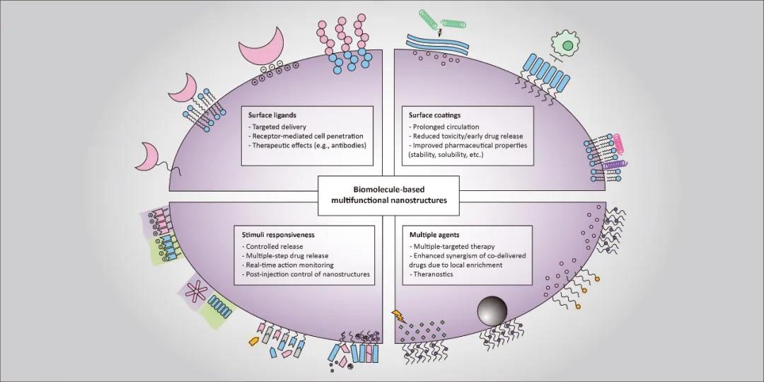纳米结构在应对癌症等具有复杂病理环境和高度异质性的疾病方面日益显示出独特优势。基于生物分子的纳米结构具有多种天然的生物功能,其独特的生物相容性、超分子属性、靶向性、响应性和可编程性等特征为智能纳米药物的精准构筑提供了新的机遇,近年来在癌症治疗领域备受瞩目。